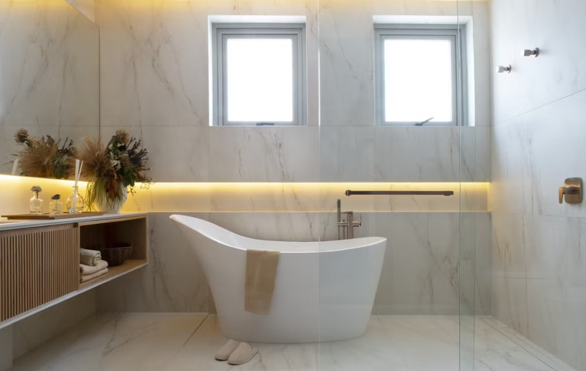 Los tonos neutros como el blanco, el gris y el beige continúan siendo populares, especialmente en acabados que imitan mármol. Estos colores aportan luminosidad y sensación de amplitud a cualquier espacio, y se combinan fácilmente con una variedad de estilos decorativos.